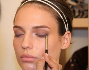سایه :برای زیر ابروها از سایه ی سفید یا نقره ای استفاده می کنیم . سر تا سر زیر ابرو را حتی بهتر است روی پلکها هم سایه ی سفید زده شود . . برای آرایش شب سایه های براق و برای آرایش روز سایه های مات استفاده می کنیم . برای عروس نیز سایه های مات مناسب تر است . گوشه ی داخل چشم را سایه ی روشن تر و هر چه به سمت خارج چشم حرکت می کنیم سایه تیره تر می گردد. گوشه ی خارجی چشم را بالا کشیده تا به نوک ابروها با غلظت کمتر برسد.
