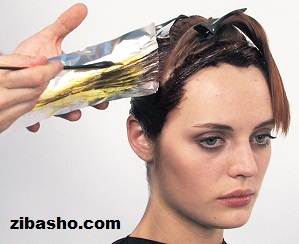 ۵-در امتداد V لایه های نازک مو را با فویل جدا کرده و رنگها رو می گذاریم.