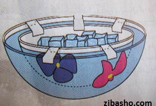 ۱-کاسه کوچکتر را در کاسه ی بزرگتر قرار داده و با چسب دهانه دو کاسه را به هم بچسبانید ،بطوریکه در یک سطح قرار بگیرند.