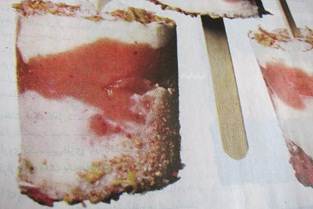 ۵-چوبهای بستنی را درست وسط بستنی های داخل هر لیوان تا نیمه فرو کنید و حداقل مدت ۴ ساعت در فریزر قرار دهید تا بستنی سفت شود و حسابی خودش راب بگیرد.بعد از این مدت ،بستنی ها را از داخل لیوان پلاستیکی خارج کنید.اگرر دیدید کار به سختی انجام میشود لیوان را پاره کنید.