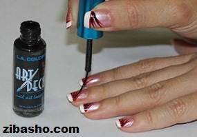 در این قسمت نیز مثل قسمت قبل عمل می کنیم با یک لاک فرنچ مشکی رنگ.