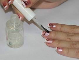 بعد از اینکه لاکها خشک شدند نوبت برق ناخن است.