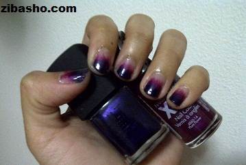 دوباره اسفنج خود را آغشته به لاک کرده و این بار فقط روی نوک ناخن ها اسفنج را بکشید،در این قسمت میتوانید رنگ لاک را عوض کنید.توجه کنید هدف از اینکار ایجاد یک سایه روشن است
