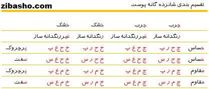 ۳ – میزان چرب بودن یا خشک بودن پوست(برخی پوسته چرب و روغنی برخی مختلط و برخی خشکند)چرب یا خشک
