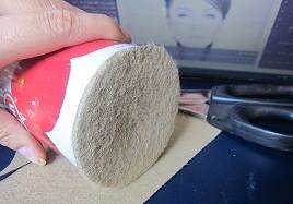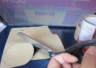 ته قوطی را روی فوم قرار میدهیم و با مداد اندازه میزنیم و با قیچی برش می دهیم و ته قوطی می چسبانیم