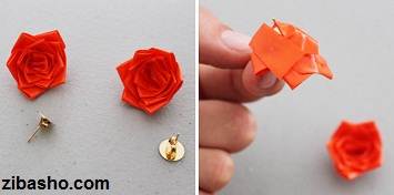 با همین روند میتوانید با کمک یک جفت پین گل کوچکی درست کنید و به پشت پین گوشواره بچسبانید همینطور سنجاق سینه و دستبند هم میتوانید با این گل ها درست کنید ….