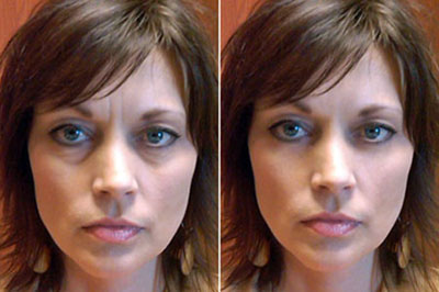 نمونه ای از بر طرف کردن خط اخم و بر آمدگی بین ابروها
