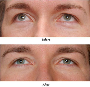 نمونه ای از بر طرف کردن گودی زیر چشم و خط اخم: