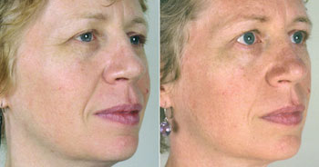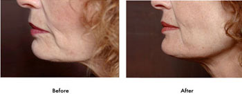 نمونه ای از برطرف کردن افتادگی عضلات اطراف دهان بعد از یک جلسه،این فرد ۶۷ ساله است:
