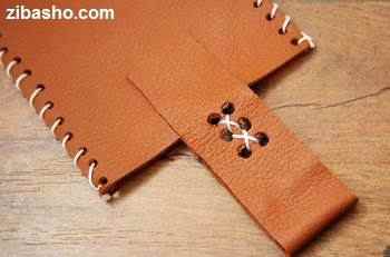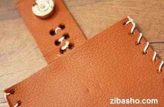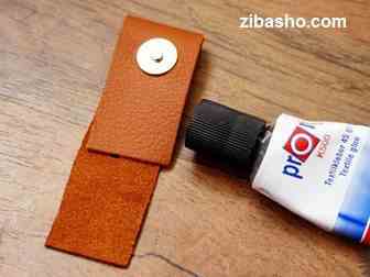 حالا یک تیکه چرم را که با سایز موبایل تناسب دارد را برداشته و قسمت سر آن را تا یک سومش تا میکنیم و با چسب فیکس می کنیم و بعد یک دکمه ی آهنربایی روی آن می چسبانیم